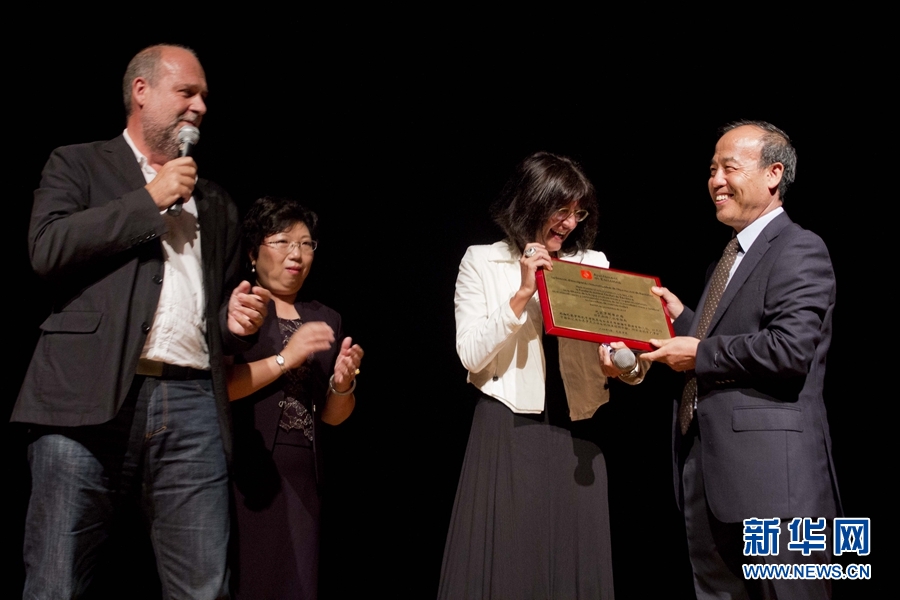 巴塞羅那市政府代表向巴塞羅那孔子學院頒獎。新華網(wǎng)發(fā) Xesco攝