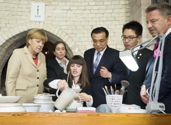 位于柏林市中心的皇家瓷器廠(chǎng),是一家有著260余年悠久歷史的手工制瓷工廠(chǎng)。在共同出席中德經(jīng)濟(jì)技術(shù)合作論壇后,默克爾特地邀請(qǐng)克強(qiáng)總理一起來(lái)到這里參觀(guān),并共進(jìn)小范圍晚宴。