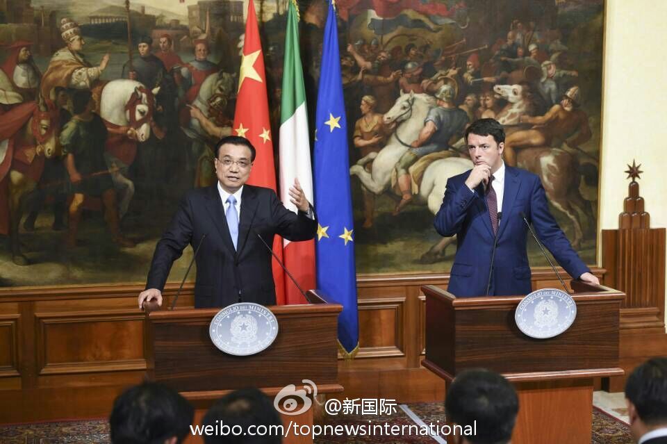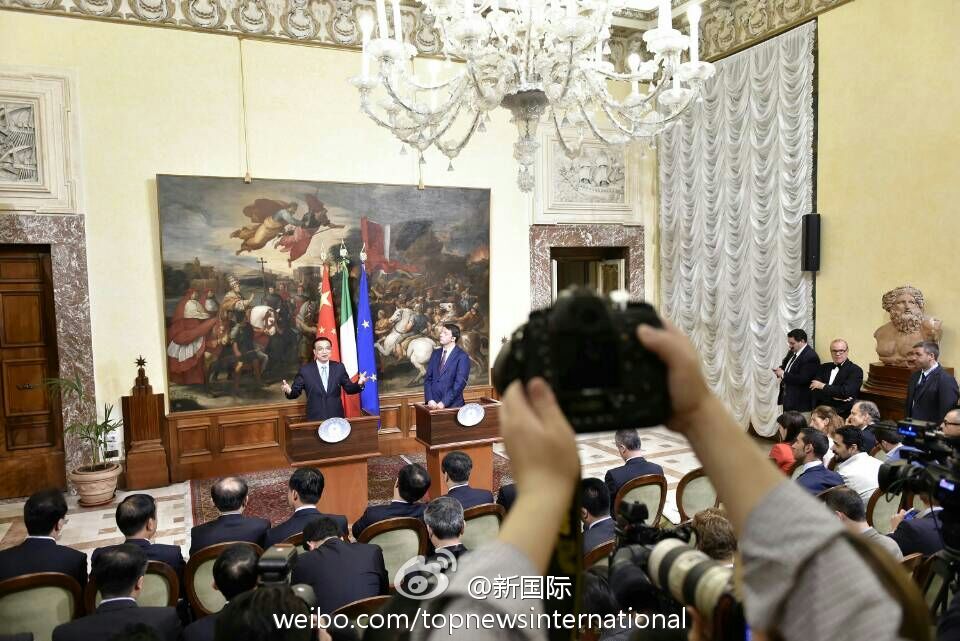 ??? 新華網(wǎng)北京10月15日電 據(jù)新華社“新國際”微博報道,國務院總理李克強14日與意大利總理倫齊在意總理府共同會見記者。李克強說,很高興來到不是一天建成的羅馬,中方不追求對意貿(mào)易順差,對擴大中意貿(mào)易合作規(guī)模充滿信心,愿與意方繼續(xù)深挖務實合作。即將簽署的協(xié)議規(guī)模高達80億歐元,這說明貿(mào)易投資規(guī)模還會擴大。?