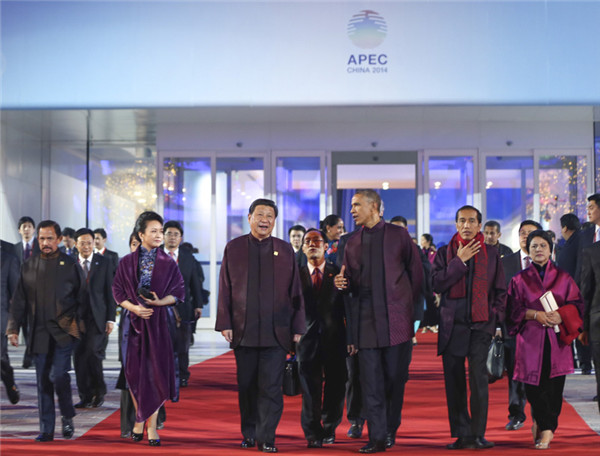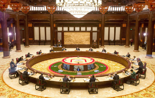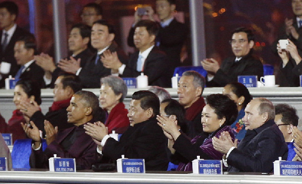 上午9時30分許,亞太經(jīng)合組織領(lǐng)導(dǎo)人非正式會議開始在雁棲湖舉行。