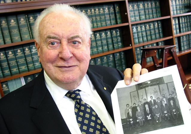 ????2004年,澳大利亞前總理惠特拉姆向中國(guó)記者展示他1986年訪華時(shí)同鄧小平的合影。新華社記者 米立公 攝
