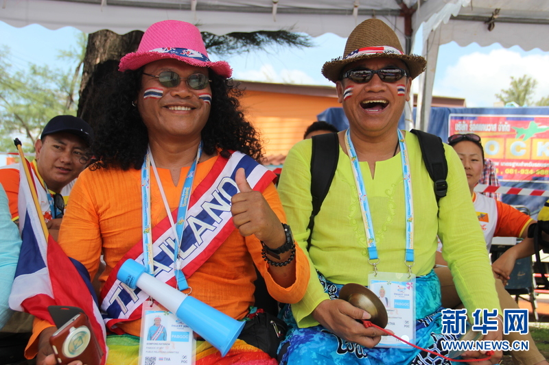 ??? 11月16日,泰國(guó)民眾為泰國(guó)運(yùn)動(dòng)健兒加油。中國(guó)體育代表團(tuán)16日在泰國(guó)普吉舉行的第四屆亞洲沙灘運(yùn)動(dòng)會(huì)上勇奪2枚金牌和2枚銅牌。當(dāng)天比賽全部結(jié)束時(shí),中國(guó)隊(duì)以3金2銀5銅的成績(jī)暫列獎(jiǎng)牌榜第五,東道主泰國(guó)隊(duì)以9金11銀12銅的成績(jī)暫列金牌榜和獎(jiǎng)牌榜第一。新華社發(fā)(塔納攝)