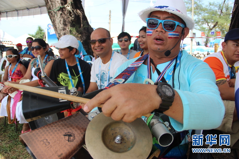 ??? 11月16日,泰國民眾為泰國運動健兒加油。中國體育代表團16日在泰國普吉舉行的第四屆亞洲沙灘運動會上勇奪2枚金牌和2枚銅牌。當天比賽全部結(jié)束時,中國隊以3金2銀5銅的成績暫列獎牌榜第五,東道主泰國隊以9金11銀12銅的成績暫列金牌榜和獎牌榜第一。新華社發(fā)(塔納攝)