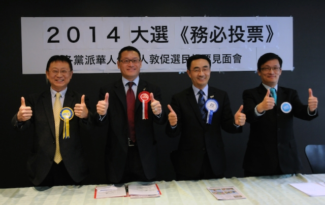 (資料圖片:新西蘭華人競選2014年國會議員,右二為楊健。新華社記者田野攝)