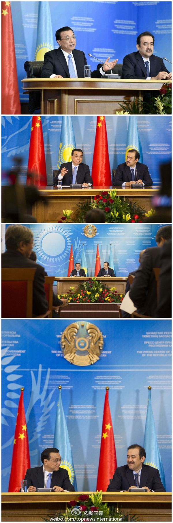 ????新華網北京12月15日電? 據新華社“新國際”微博報道,正在哈薩克斯坦進行正式訪問的李克強總理14日下午在阿斯塔納與哈總理馬西莫夫舉行會晤后共見記者。李克強說,冬天的阿斯塔納氣候寒冷,但中哈合作的溫度在不斷增加,使我們像身處春天一樣,我對中哈合作充滿信心,祝愿中哈合作繁花似錦。