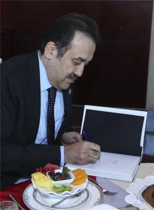 ????馬西莫夫總理則回贈給克強總理自己所著《哈薩克斯坦》一書的中譯本和一個小擺件,他還特意在書的扉頁上簽上了自己的名字??磥恚@位“中國通”也希望咱們的總理更深入地了解他的國家。