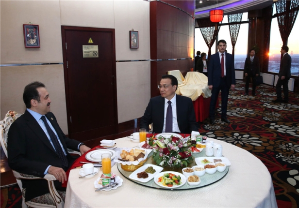 ????新華網(wǎng)北京12月16日電 據(jù)新華社“新華國際”客戶端報道,“一日之計在于晨”??藦娍偫?5日的緊張日程從一頓早飯開始。天剛蒙蒙亮,哈薩克斯坦總理馬西莫夫就來到克強總理下榻的酒店——北京大廈,邀請克強總理一起吃早餐。