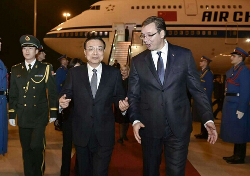 李克強(qiáng)抵貝爾格萊德,塞總理率兩位副總理到機(jī)場迎接