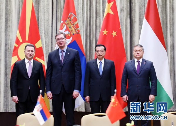 ??? 12月17日,國務(wù)院總理李克強(qiáng)在貝爾格萊德集體會(huì)見塞爾維亞總理武契奇、匈牙利總理歐爾班和馬其頓總理格魯埃夫斯基。 新華社記者 姚大偉攝