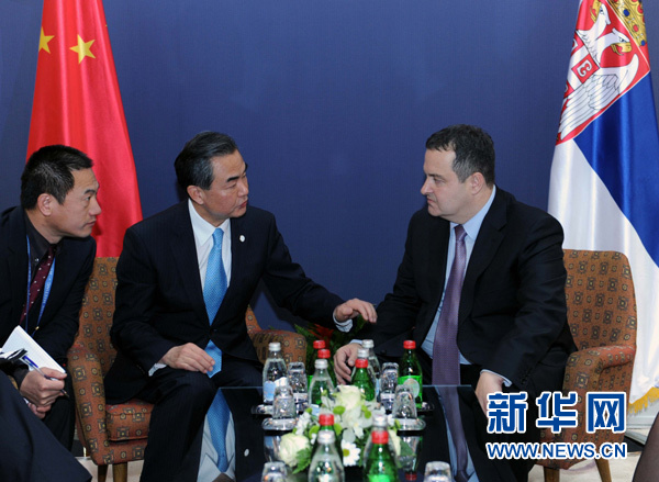 ??? 12月17日,正在陪同李克強(qiáng)總理訪問(wèn)塞爾維亞的外交部長(zhǎng)王毅應(yīng)約會(huì)見塞爾維亞第一副總理兼外長(zhǎng)達(dá)契奇。 新華社記者 饒愛民 攝