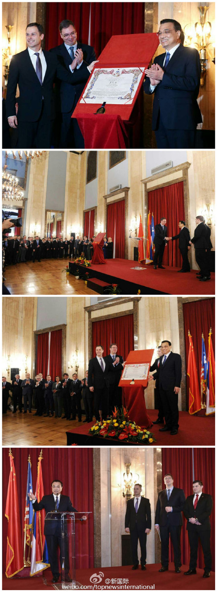 李克強被授予“貝爾格萊德榮譽市民”