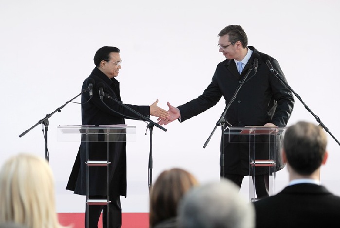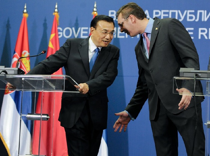 李克強與塞爾維亞總理武契奇共見記者。中新社 劉震 攝
