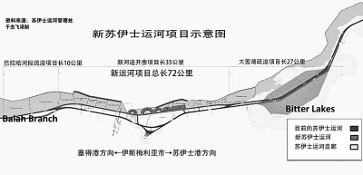 馬米什稱,開鑿新運河實際上是在北起點的第60公里至95公里河段處,挖一條新的平行河道。這樣一來,過去的“單行線”將變成“雙向道”,大大提升通航效率。目前,南向船只要通過蘇伊士運河,中途需要在大苦湖等待8—10個小時。此外,對37公里長的河段進行疏浚,從而允許吃水深度超過66英尺(約20米)的超大型船舶通行。新運河建成后,船舶通過蘇伊士運河將不需要等待,每天的通行量將由49艘提升至97艘,平均通行時間由18小時縮短為11小時,運河收入有望實現(xiàn)259%的增長。