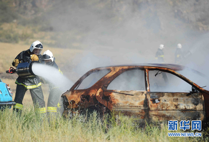 6月3日,代表中國參加上合組織國際救援聯(lián)合演練的新疆消防總隊隊員在哈薩克斯坦阿拉木圖州塔姆卡壘塔斯景區(qū)的哈內(nèi)務(wù)部緊急情況委員會教練基地“巖石城-阿斯塔納”參加演練。新華社記者沙達提攝