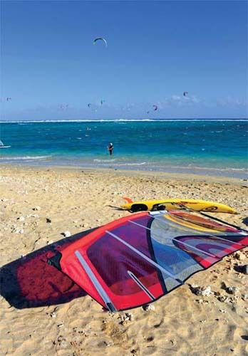 我們在留尼旺的幾天時(shí)間里風(fēng)浪都比較大,不過來到海邊卻發(fā)現(xiàn)海灘上依舊人聲鼎沸,原來好動的法國人和一些歐美游客正利用風(fēng)浪玩起了刺激的海上運(yùn)動。幾米高的海浪中早已有了十多名沖浪好手相繼嘗試挑戰(zhàn),雖然他們中的大部分只是業(yè)余愛好,并非職業(yè)沖浪選手,不過一招一式也是頗為認(rèn)真??拷0陡浇臏\水區(qū)則更多是風(fēng)帆、摩托艇、皮劃艇、海浪滑板等各項(xiàng)水上運(yùn)動的世界,對于他們來說,大風(fēng)就是運(yùn)動的動力,海水就是運(yùn)動的場地。一般島上的家庭都會趁著周末舉家開車來到海邊,喜歡玩水的玩水,而其他家庭成員則在沙灘上聚餐或者聊天,如此融入大自然真是瀟灑。