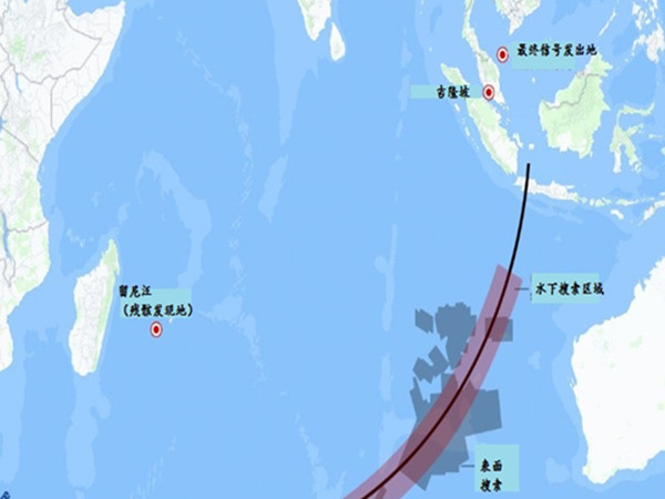 目前的搜索工作集中在西澳大利亞沿海,這個(gè)弧形的搜索區(qū)域是調(diào)查人員根據(jù)掌握數(shù)據(jù)計(jì)算出的結(jié)果。