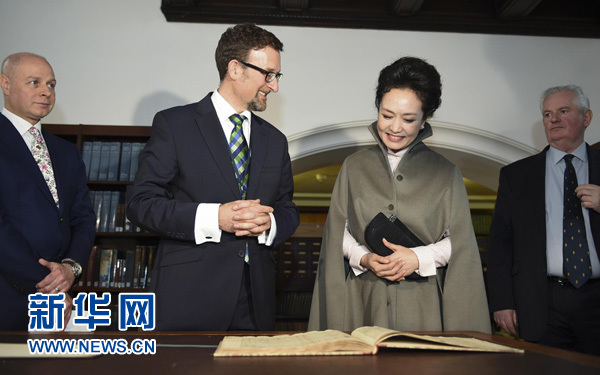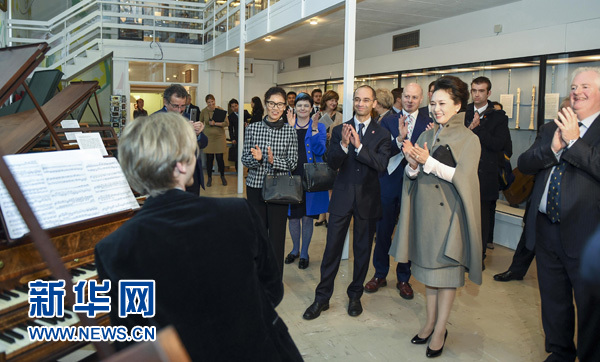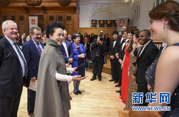 彭麗媛抵達(dá)時(shí),受到皇家音樂學(xué)院董事會(huì)主席溫斯頓勛爵、學(xué)院院長、英國友人等熱烈歡迎。在院長陪同下,彭麗媛欣賞了獲獎(jiǎng)學(xué)生和校友精彩的聲樂、器樂表演,參觀了樂器博物館,觀賞了圖書館珍藏的莫扎特、肖邦等音樂大師創(chuàng)作手稿,并同學(xué)院師生進(jìn)行交流。彭麗媛表示,音樂作為一種高尚的藝術(shù)形式,超越國家、民族、歷史、文化界限?;始乙魳穼W(xué)院培養(yǎng)出眾多世界級(jí)藝術(shù)家。中國有不少音樂作品享譽(yù)世界,希望皇家音樂學(xué)院今后加強(qiáng)同中國音樂院校的交流,為促進(jìn)中英教育和藝術(shù)合作貢獻(xiàn)力量。