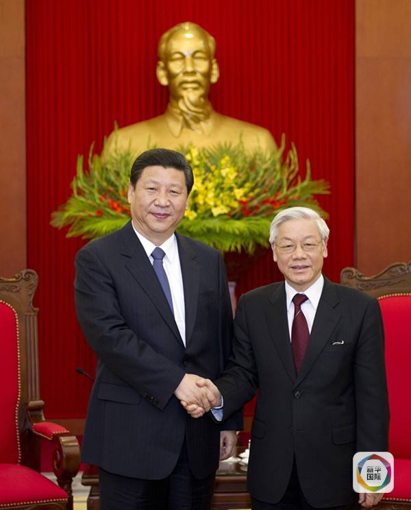 2011年12月21日,時任中共中央政治局常委、國家副主席習(xí)近平在河內(nèi)會見越共中央總書記阮富仲。