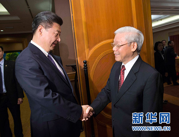 阮富仲向習(xí)近平介紹了越南革新事業(yè)取得的成績和越共十二大籌備情況。阮富仲表示,越方高度重視新形勢下黨建工作,關(guān)注中方黨建和發(fā)展社會主義經(jīng)驗,愿同中方加強交流合作,互學(xué)互鑒。越方贊同兩國增進各領(lǐng)域交流合作。