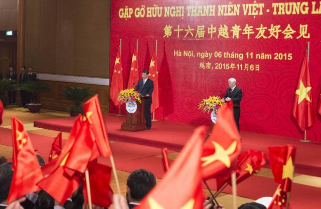 11月6日,中共中央總書記、國家主席習(xí)近平和越共中央總書記阮富仲在河內(nèi)共同會見參加第十六屆中越青年友好會見活動的中越青年代表。新華社記者李學(xué)仁攝