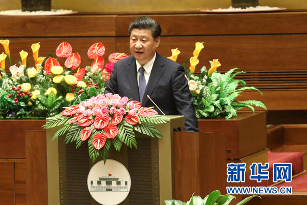 ???? 11月6日,中共中央總書記、國家主席習近平在越南國會發(fā)表題為《共同譜寫中越友好新篇章》的重要演講。 新華社記者 龐興雷 攝