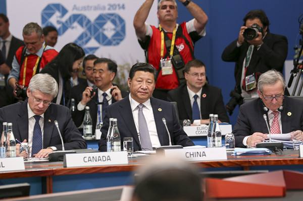 2014年11月15日,G20第九次峰會在澳大利亞布里斯班舉行。國家主席習(xí)近平出席會議并發(fā)表題為《推動創(chuàng)新發(fā)展 實現(xiàn)聯(lián)動增長》的重要講話。 新華社發(fā)