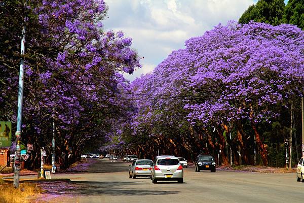 直至今天,漫步在哈拉雷街道上依舊能感受到英國小鎮(zhèn)氣息,每年9至10月份,紫色的藍(lán)花楹盛開之際,全城沉浸在紫色的花海中。