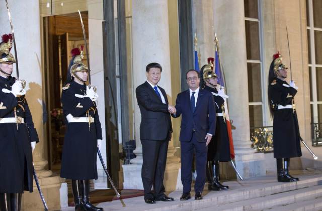 習(xí)主席29日下午抵達(dá)巴黎時(shí),受到法方熱情接待。奧朗德總統(tǒng)作為東道國(guó)領(lǐng)導(dǎo)人,面對(duì)千頭萬(wàn)緒的工作,仍專門安排時(shí)間,與習(xí)主席單獨(dú)會(huì)見并共進(jìn)晚餐。可要知道,法方所面對(duì)的是150多位各國(guó)元首和政府首腦,奧朗德單獨(dú)同習(xí)主席共進(jìn)晚餐,重視程度可見一斑。