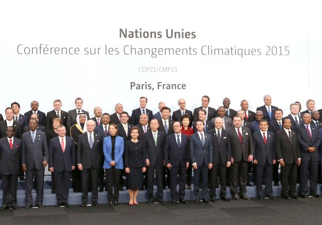 11月30日,國(guó)家主席習(xí)近平在巴黎出席氣候變化巴黎大會(huì)開幕式并發(fā)表題為《攜手構(gòu)建合作共贏、公平合理的氣候變化治理機(jī)制》的重要講話。這是與會(huì)領(lǐng)導(dǎo)人合影。新華社記者馬占成攝