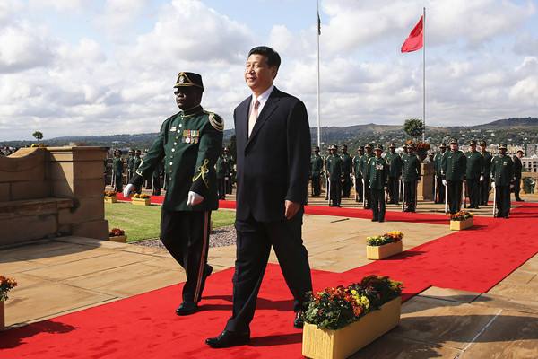 2013年3月26日,南非總統(tǒng)祖馬在比勒陀利亞聯(lián)邦大廈前廣場(chǎng)舉行儀式,歡迎中國國家主席習(xí)近平訪問南非。( 新華社記者蘭紅光攝)