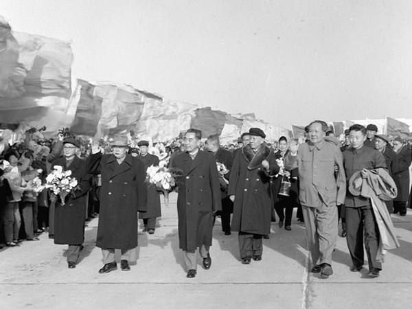 1964年3月15日,國務(wù)院總理周恩來結(jié)束了對非洲10個國家、阿爾巴尼亞和亞洲3個國家的訪問之后,乘專機回京。黨和國家領(lǐng)導人毛澤東、劉少奇、鄧小平等以及首都各界群眾五千多人前往機場熱烈歡迎。(新華社記者劉慶瑞攝)