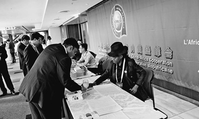 3日,印有中非合作論壇徽標,用中、英、法三種文字書寫的“中非合作論壇約翰內(nèi)斯堡峰會”及主題詞“中非攜手并進:合作共贏、共同發(fā)展”的巨幅招貼畫,將約堡桑頓會議中心裝點出一番全新的意境。