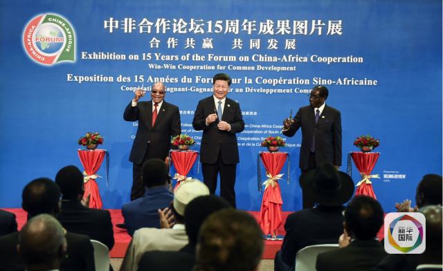 12月4日,國(guó)家主席習(xí)近平在約翰內(nèi)斯堡出席中非合作論壇15周年成果圖片展開幕式,同南非總統(tǒng)祖馬,非盟輪值主席、津巴布韋總統(tǒng)穆加貝一道為展覽剪彩。(新華社記者謝環(huán)馳攝)