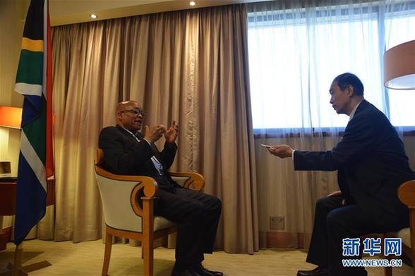 12月6日,南非總統(tǒng)祖馬(左)在南非約翰內斯堡接受新華社記者專訪。 “我們非常感謝中國理解非洲的困難和面臨的挑戰(zhàn),感謝中國領導人和中國人民與我們一起并肩面對。習近平主席在峰會上的講話告訴全世界:中國是我們真正的朋友和伙伴,”南非總統(tǒng)祖馬6日在接受新華社專訪時說。新華社記者趙熙攝