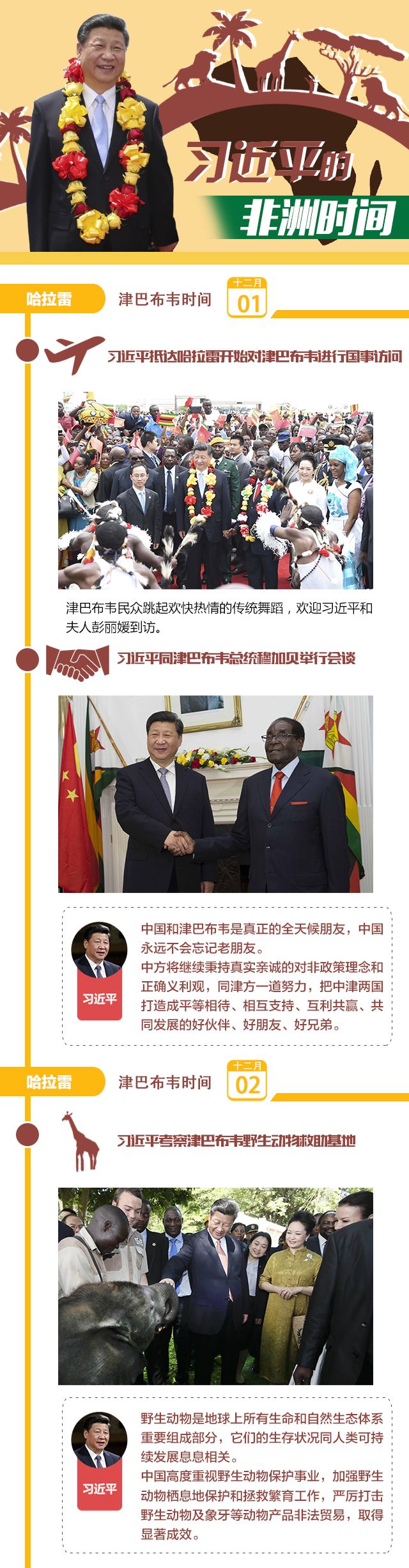 新華網(wǎng)北京12月7日電 12月1日至5日,國家主席習(xí)近平對津巴布韋和南非進行國事訪問,并赴南非約翰內(nèi)斯堡和南非總統(tǒng)祖馬共同主持中非合作論壇峰會。新華社記者帶你全覽習(xí)主席的非洲時間。