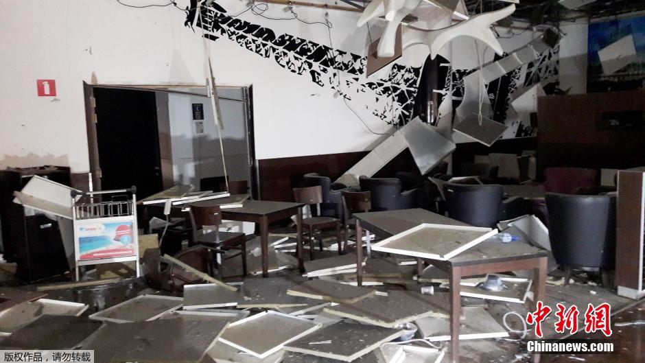 天花板被爆炸沖擊波摧毀。