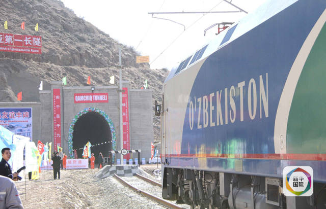 2016年2月27日,一列專列停在烏茲別克斯坦安格連-帕普鐵路卡姆奇克隧道進(jìn)口。( 新華社記者沙達(dá)提攝)