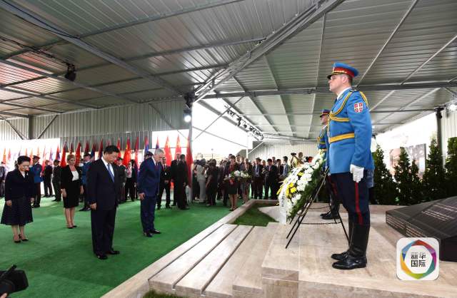 舊址上,又立起一塊新的黑色紀念碑,“緬懷烈士 珍愛和平”8個字莊嚴肅穆,落款“中華人民共和國2016年6月17日立”。紀念碑前,習主席肅立默哀,塞爾維亞總統(tǒng)、議長、總理及全體內閣成員參加憑吊。