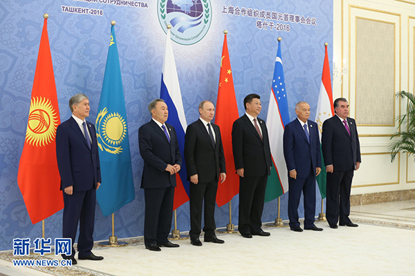 新華社塔什干6月24日電(記者陳贄 霍小光 駱珺)24日,上海合作組織成員國元首理事會第十六次會議在烏茲別克斯坦塔什干舉行。國家主席習(xí)近平同哈薩克斯坦總統(tǒng)納扎爾巴耶夫、吉爾吉斯斯坦總統(tǒng)阿坦巴耶夫、俄羅斯總統(tǒng)普京、塔吉克斯坦總統(tǒng)拉赫蒙、烏茲別克斯坦總統(tǒng)卡里莫夫出席會議。習(xí)近平在會上發(fā)表重要講話,強調(diào)要堅定遵循上海合作組織根本宗旨和原則,牢牢把握發(fā)展大方向,動態(tài)調(diào)整各領(lǐng)域合作方略,確保本組織生機活力。