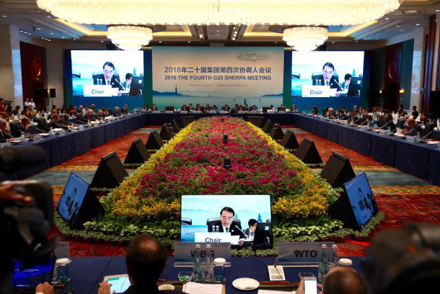 圖為9月1日,2016年二十國(guó)集團(tuán)第四次協(xié)調(diào)人會(huì)議在浙江杭州舉行。 (新華社記者金立旺攝 )