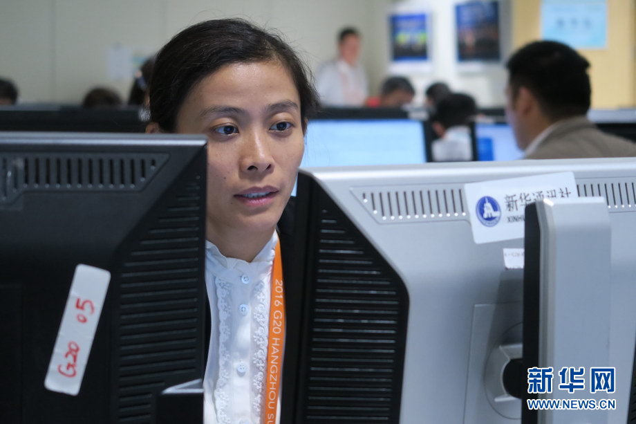 二十國集團領導人第十一次峰會9月4日至5日在浙江杭州舉行。峰會新聞中心一派繁忙景象,境內(nèi)外各路媒體記者使出“洪荒之力”,實時報道峰會動態(tài)。新華網(wǎng)記者 陳競超 攝