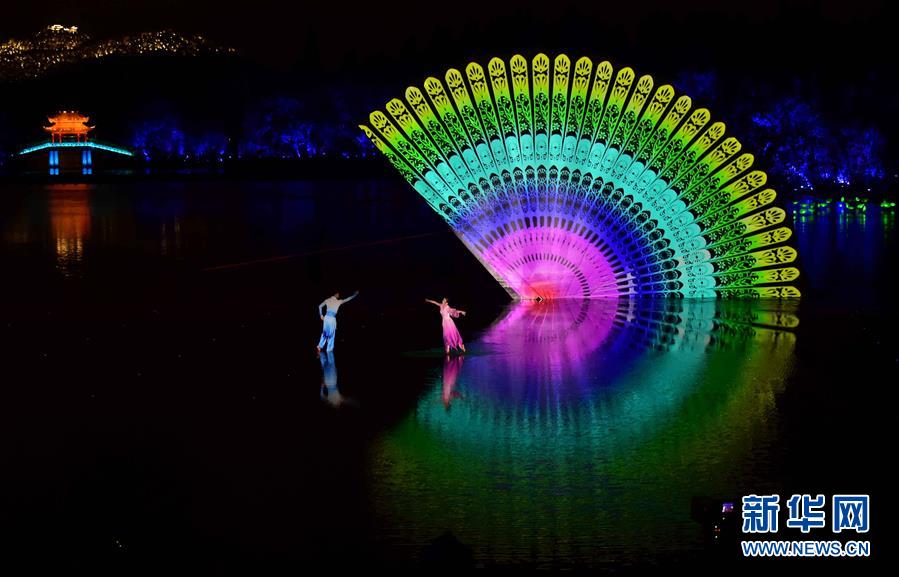 ??? 9月4日,演員在表演《美麗的愛情傳說》。當(dāng)日,出席二十國集團領(lǐng)導(dǎo)人杭州峰會的G20成員和嘉賓國領(lǐng)導(dǎo)人及有關(guān)國際組織負(fù)責(zé)人在杭州西湖景區(qū)觀看《最憶是杭州》實景演出交響音樂會。新華社記者 張鐸 攝
