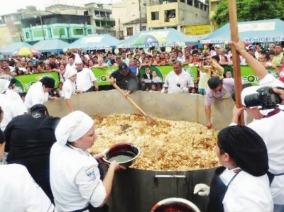 克韋多市作為“炒冷飯”的故鄉(xiāng),為了推廣國(guó)內(nèi)和國(guó)際旅游,在2013年還曾做過(guò)一個(gè)世界最大的“炒冷飯”。當(dāng)時(shí)使用的鍋直徑4米,深1.5米,使用的食材有500公斤大米、1000個(gè)雞蛋、50升油、三大桶醬油,還有上百公斤的雞肉、蝦仁等,40多名廚師學(xué)校的學(xué)生一起參與了制作。現(xiàn)場(chǎng)數(shù)千民眾隨后一起享用了這個(gè)巨無(wú)霸“炒冷飯”。