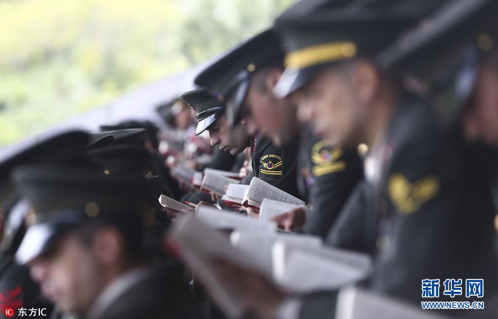 當(dāng)?shù)貢r(shí)間2017年5月18日,土耳其安卡拉,在憲兵和海岸警衛(wèi)學(xué)院體育場(chǎng),土耳其憲兵參加集體讀書活動(dòng),打破“最多人一起讀書”吉尼斯紀(jì)錄,慶祝憲兵部成立178周年。包括土耳其憲兵、海岸警衛(wèi)隊(duì)及其家人在內(nèi)等5754人參加了這一集體活動(dòng)。(圖片來源:東方IC)