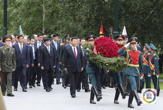 7月4日,國(guó)家主席習(xí)近平在莫斯科向俄羅斯無名烈士墓敬獻(xiàn)花圈。新華社記者 謝環(huán)馳 攝
