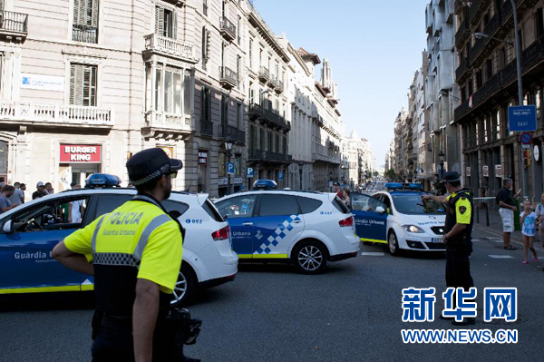 8月17日,在西班牙巴塞羅那,警方在發(fā)生汽車撞人恐怖襲擊事件后封鎖現(xiàn)場附近道路。西班牙巴塞羅那市所在的加泰羅尼亞自治區(qū)政府17日晚確認(rèn),巴塞羅那市當(dāng)天發(fā)生汽車撞人的恐怖襲擊事件,現(xiàn)已造成13人喪生、80人受傷,其中15人重傷。新華社發(fā)(利諾·德瓦利耶?dāng)z)