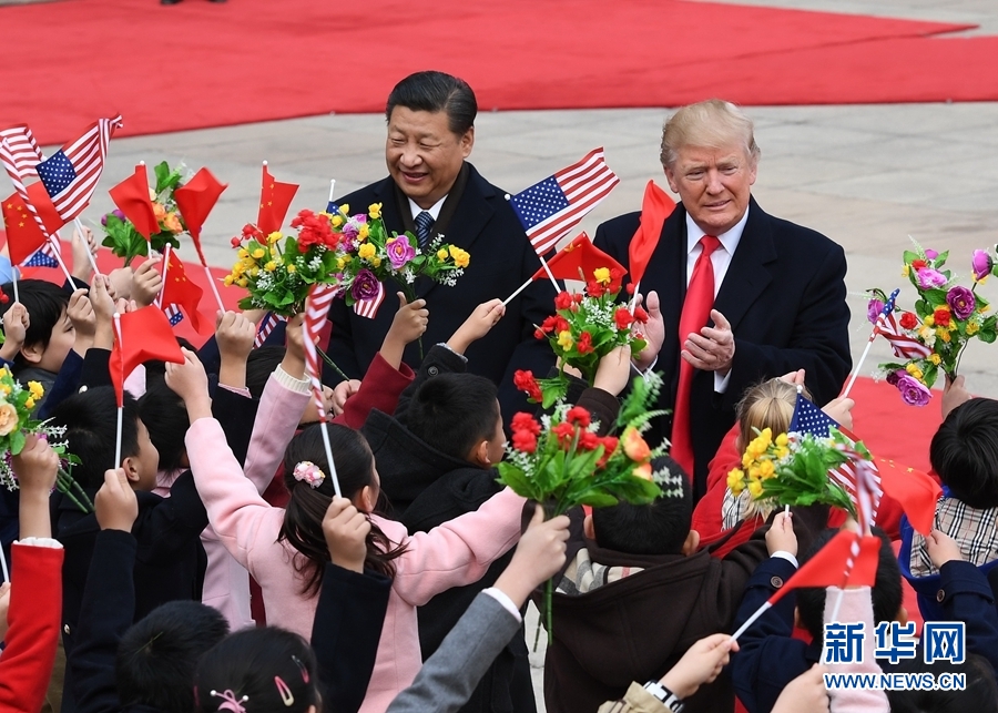11月9日,國(guó)家主席習(xí)近平在北京人民大會(huì)堂東門(mén)外廣場(chǎng)舉行歡迎儀式,歡迎美利堅(jiān)合眾國(guó)總統(tǒng)唐納德·特朗普對(duì)中國(guó)進(jìn)行國(guó)事訪問(wèn)。 新華社記者饒愛(ài)民 攝