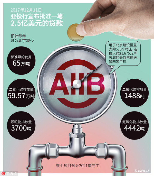 【首個(gè)對(duì)華項(xiàng)目落戶北京】2017年12月11日,亞投行首個(gè)對(duì)華項(xiàng)目落戶北京,用于天然氣輸送管網(wǎng)建設(shè)等工程,助力“北京藍(lán)”。秉持“簡(jiǎn)潔、廉潔、清潔”的核心價(jià)值觀的亞投行,贏得世界廣泛信任。