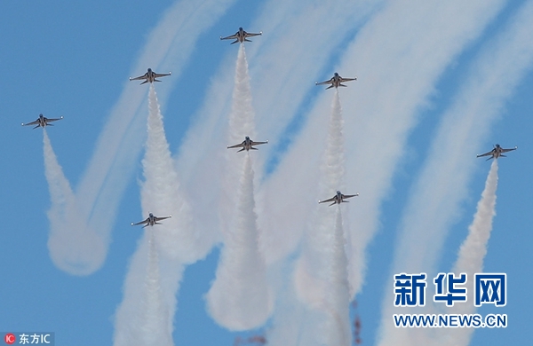 當(dāng)?shù)貢r間2017年12月21日,韓國平昌,距離2018年平昌冬奧會開幕僅剩50天,韓國空軍黑鷹特技飛行隊在阿爾卑西亞體育場上空進行精彩表演。(圖片來源:東方IC)