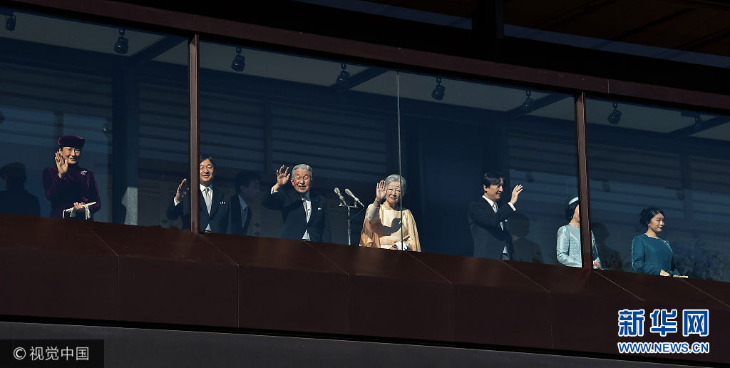 當(dāng)?shù)貢r(shí)間2017年12月23日,日本東京,日本明仁天皇慶祝84歲生日,在皇宮的陽(yáng)臺(tái)上向祝福者揮手致意。(圖片來(lái)源:視覺中國(guó))